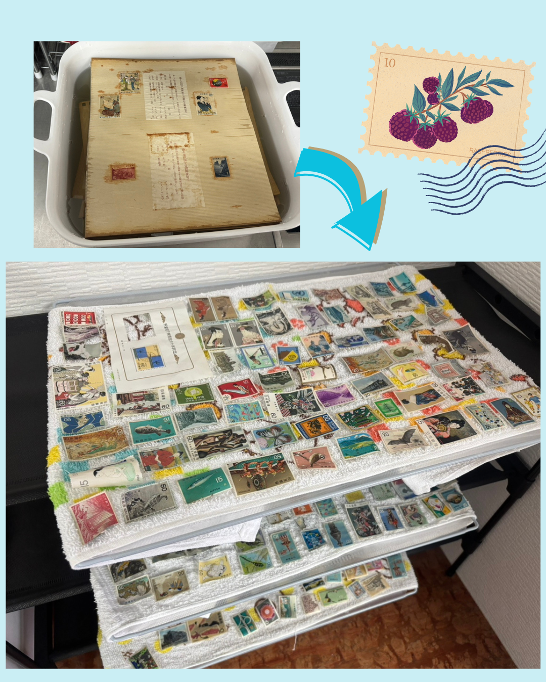 なかなか用紙から外れにくい切手もありますが、水に触れていると心が落ち着き、癒される気がします☺️